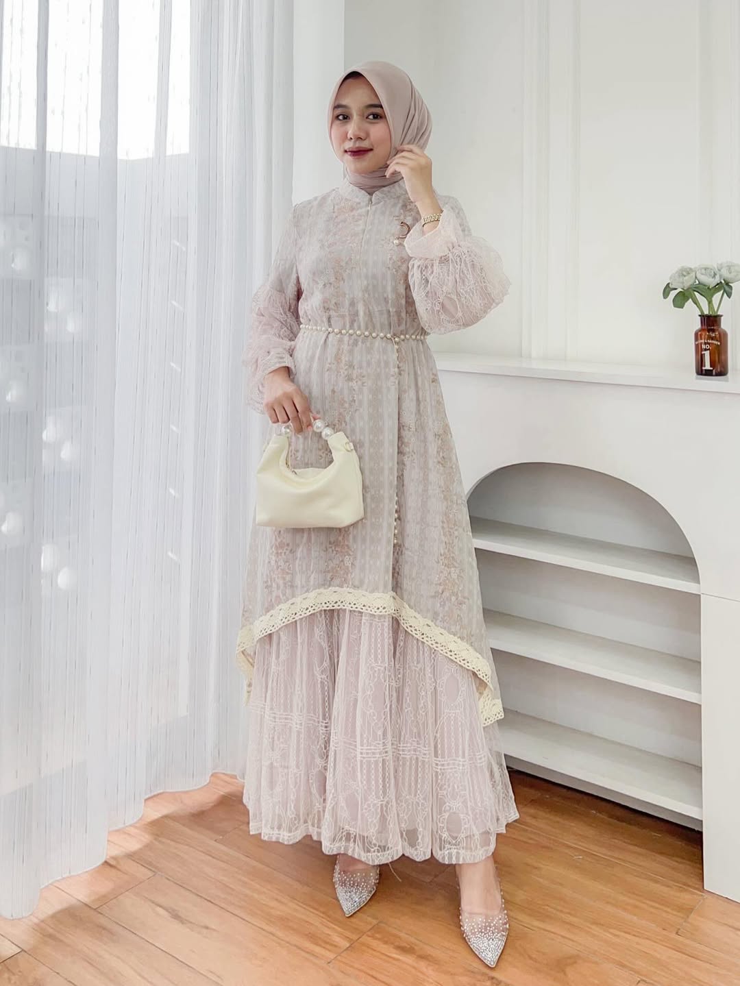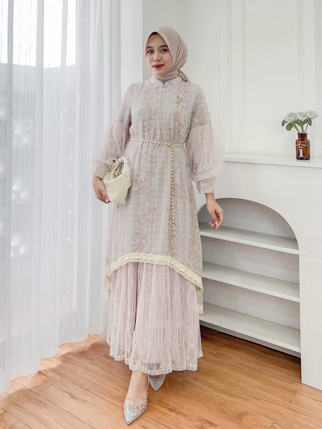 Dress Busui Friendly dengan Bahan Tile kombinasi brukat yang nyaman, jatuh cantik, dan bikin tampil anggun seharian. Tersedia 4 Pilihan warna