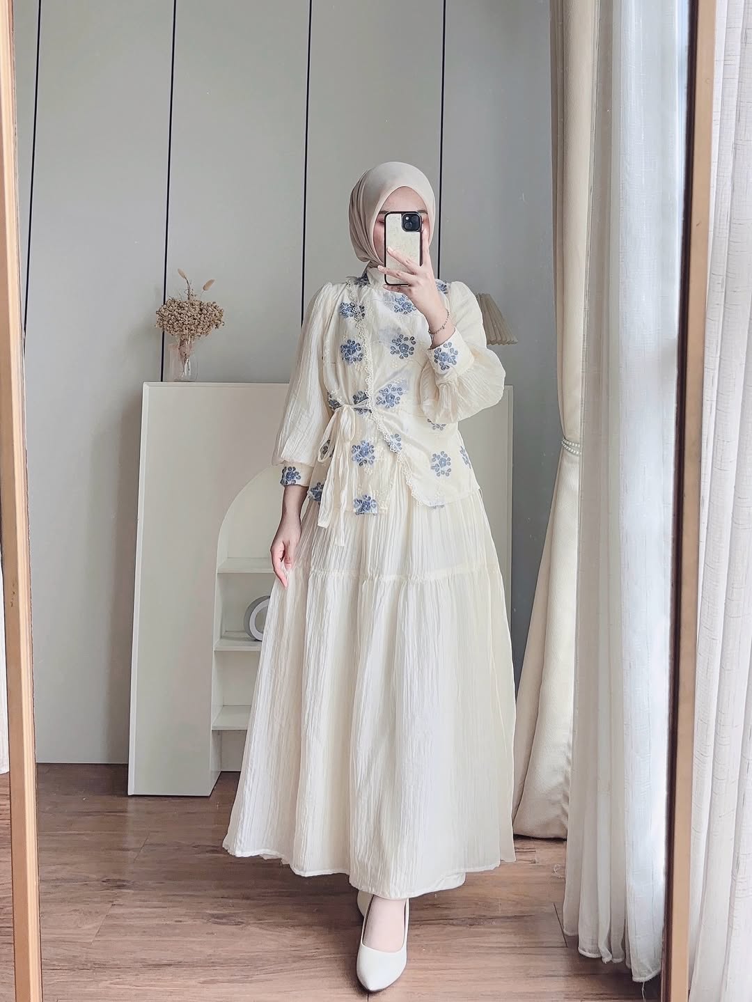 Lingkar Dada : 108cm Lingkar Lengan : 40cm Lingkar Pinggang : 70cm-100cm Panjang Lengan : 58cm Panjang Baju Depan : 68cm Panjang Baju Belakang : 58cm Panjang Rok : 95cm
